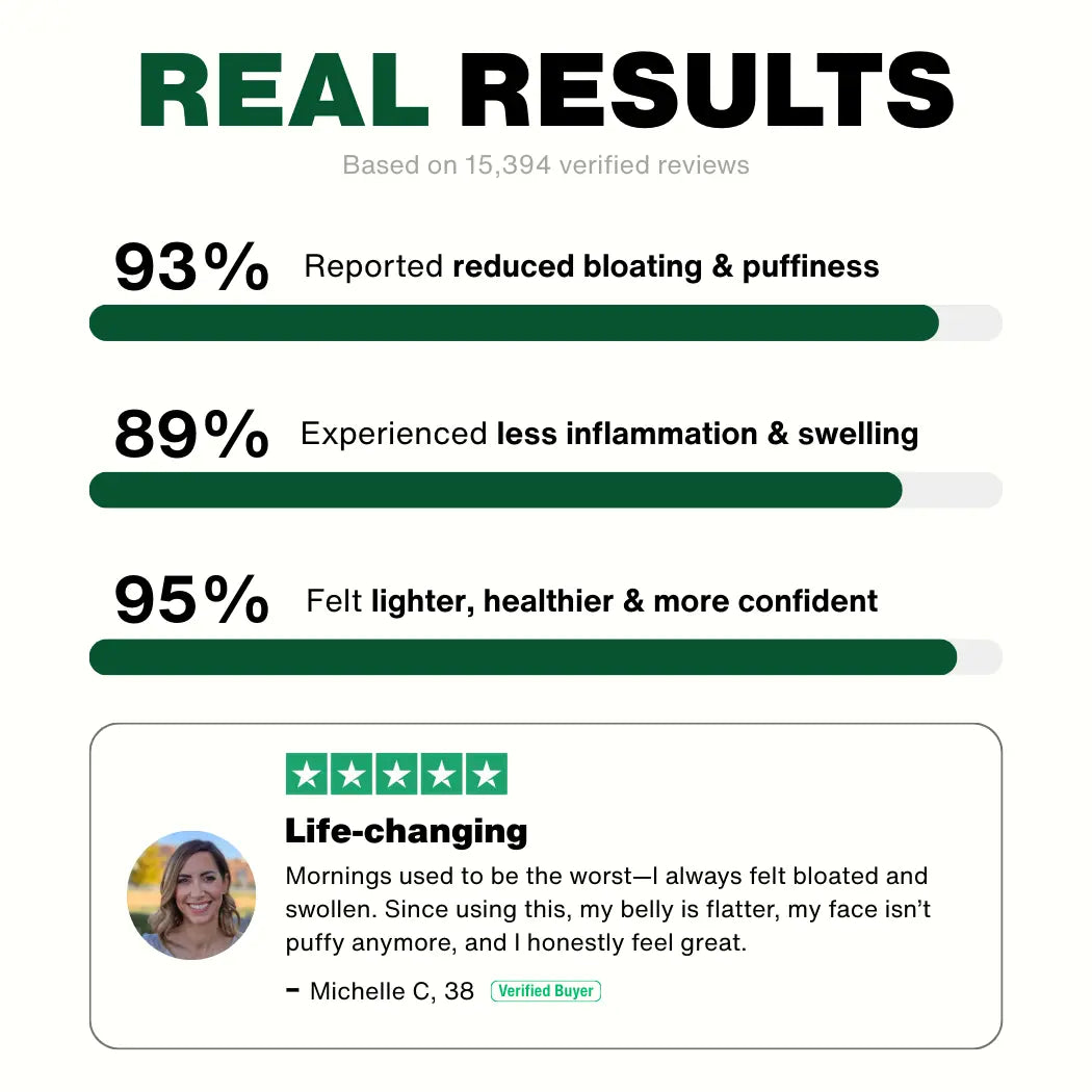 Many people notice changes such as reduced bloating or puffiness within 1–2 weeks.